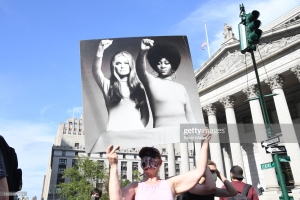 In 2013, Gloria Steinem and Dorothy Pitman Hughes reenacted the Wynn photograph themselves at a birthday party and fundraiser organized by Pitman Hughes. According to Dan Bagan, the photographer of the 2013 photograph (Figure 5), someone from the crowd “of hundreds” called out for the women “to do the salute” (Hampton). Referring, of course, to the raised first that is part of their visual legacy as friends and activists. Reenacting a photograph can be a way to commemorate a significant moment in history and reflect on the progress made since then. It allows individuals to revisit their past activism and the impact it has had on the feminist movement and society as a whole. By reenacting their photograph, Steinem and Pitman Hughes reflect the continued relevance of their message and ideals, reminding audiences of the ongoing struggle for gender equality and social justice and emphasizing that the issues they fought for are still pertinent today. Reenactments of iconic images can generate conversations, raise awareness, and reinvigorate public interest in specific issues. By revisiting the photograph and sharing the reenactment, Steinem and Pitman Hughes can reignite discussions on feminism, gender equality, and social justice, prompting a renewed focus on these topics.