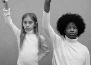 As demonstrated by the photograph of the young girls recreating the image (Figure 4), icons interpolate a form of citizenship that can be imitated. In “Rhetorical Citizenship: Studying the Discursive Crafting and Enactment of Citizenship,” Christian Kock and Lisa S. Villadsen write that the “notion of rhetorical citizenship offers a frame for studying very diverse discursive and other symbolic formations to see how they may either contribute to or alter common conceptions and practices relating to societal identity and cohesion” (582). Icons, as discursive and symbolic formations, can define relationships between civic actors by functioning as a mode of civic performance (Hariman and Lucaites 12, 30). In the case of Wynn photograph, the image offers a civic through an enactment of feminist values of friendship, solidarity, and activism. Both women exude a sense of empowerment and confidence in the image. Their raised fists and assertive gestures convey the idea that they are standing up against inequality and injustice, emphasizing the importance of self-empowerment in the fight for equality.
