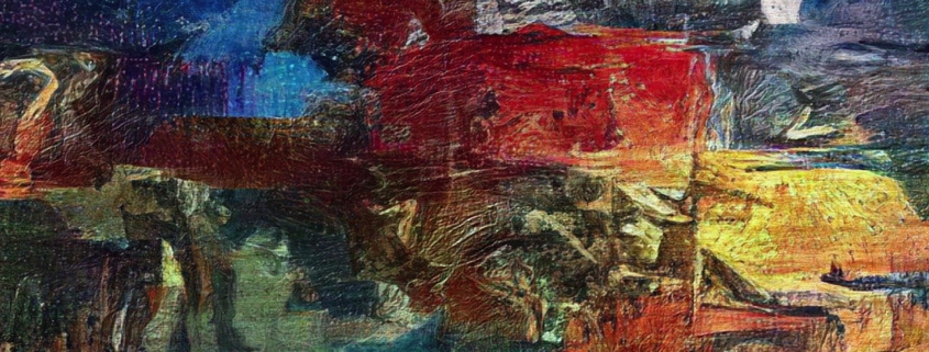 Cover Art: Image description: an abstract painting of wavy, blurred lines in many muted colors: mostly dark greens and blues, but with some red, yellow, and lighter blue and green. In the lower left corner, in yellow, are the words “Peitho Volume 25.1 Fall 2022."