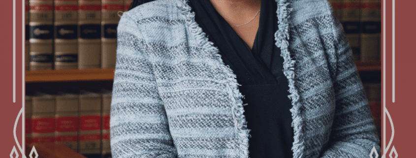 Cover Art: Justice Ketanji Brown Jackson, seated with her elbow resting on a table. In the background are shelves of volumes of case law. She is looking out a window, which is reflected in her glasses. She appears pensive.