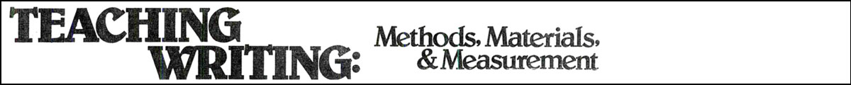 Teaching Writing: Methods, Materials, and Measurement was published by the Department of English at the University of Delaware from 1978 to 1987. It included articles from scholars such as Frank D’Angelo, Diane Balestri, James Berlin, Jeanne Fahnestock, Stephen North, and Margo Soven, among many others.