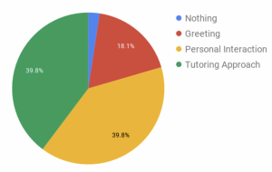 As students reported what their tutor did that they found welcoming, we noticed three substantial trends emerge: a greeting at the beginning of the session, particular tutoring strategies that they found helpful, and their personal interaction with their tutor. Some responses fell into more than one category.